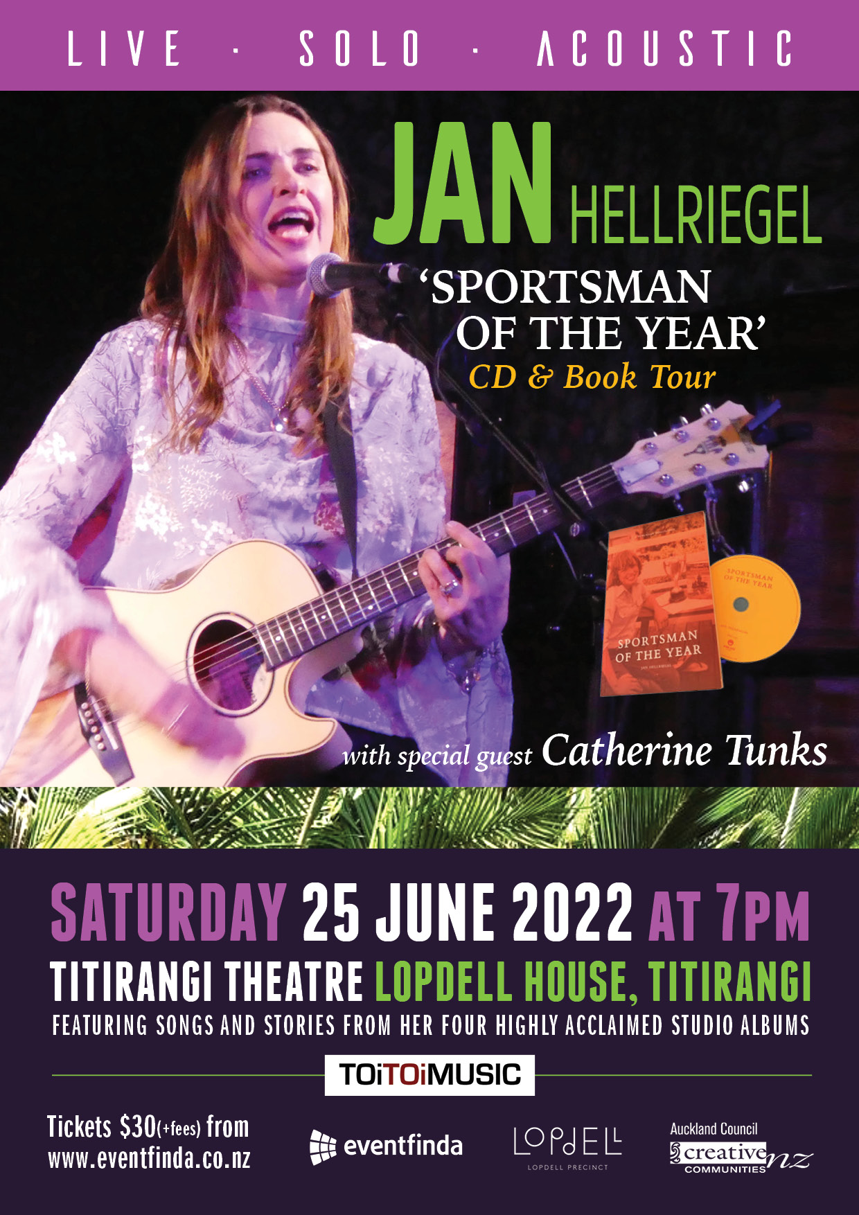 After cutting her teeth with the Dunedin-based Cassandra’s Ears, Jan Hellriegel burst onto the NZ music scene in the early ’90s with ‘It’s My Sin’, her debut rock album which peaked at number 5 in the national charts. Accompanied by a poignant book to give background and context to the songs on the record, her latest, ‘Sportsman of the Year’, ascended to number 2 in the NZ albums charts and garnered her a new generation of fans.