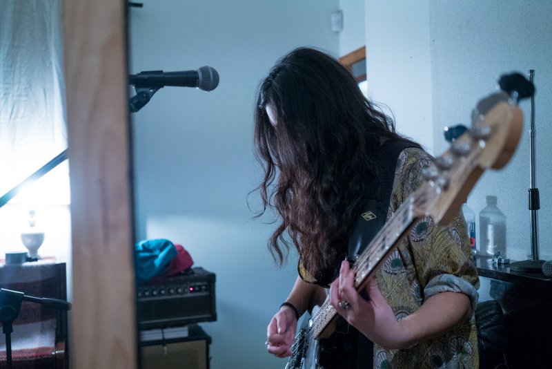 They describe their sound as “guitarless guitar music”, and spend a lot of time writing and rehearsing in a Karangahape Road studio run by Jonathan Pearce. The room is small and their music is loud.