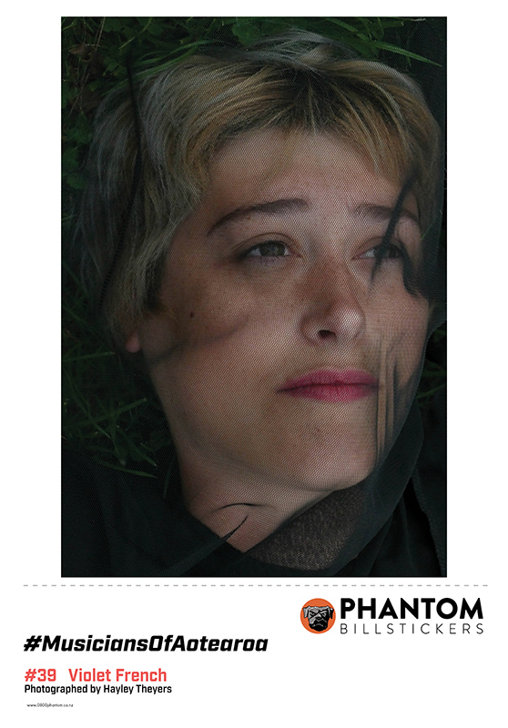 Each NZ Music Month of recent years, Phantom Billstickers have brought striking portraits of local musicians taken by Auckland photographer Hayley Theyers to walls and fences nationwide. We’re pleased to feature the full collection of Musicians Of Aotearoa 2019 here.