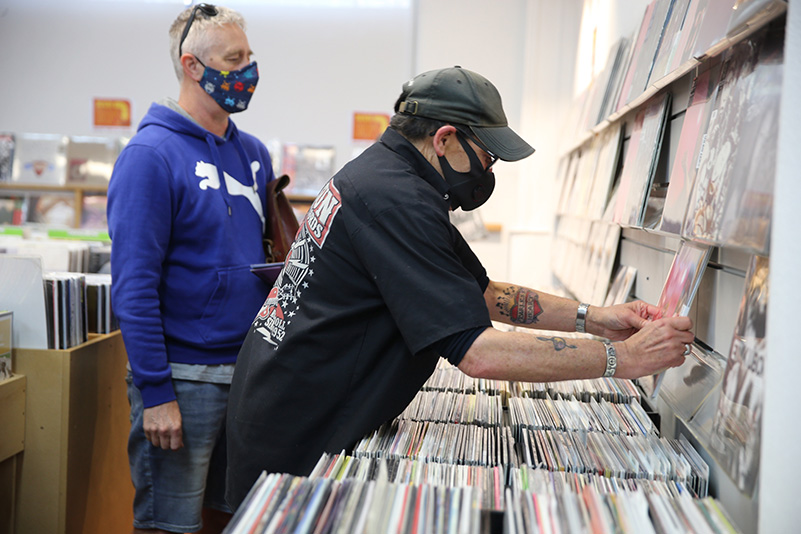 After a number of Covid-19-related delays, Record Store Day 2020 in Aotearoa took place on September 26, and like every year, photographer Trevor Villers went along to see what was happening in Auckland City. Here is a small selection of his many photos, including opening time queues, “plenty of masks (but no ear muffs!)”, as Trevor observes, and, of course, lots of records.