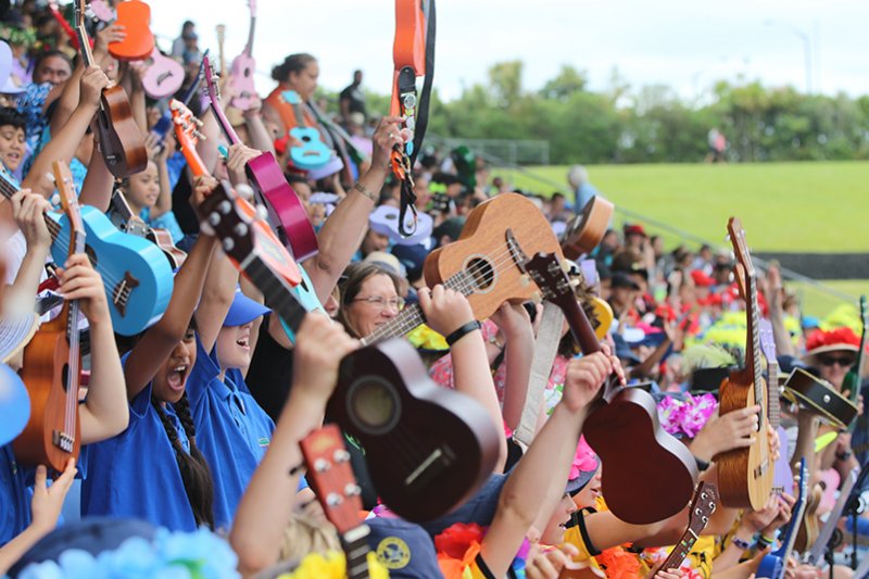 On November 17, crowds of all ages gathered for one of the most delightful festivals of the year – the Ukulele Festival 2018, this year held at Trust Stadium in Henderson. None other than award-winning 12-year-old Lotima Nicholas Pome’e aka General Fiyah surprised the crowd as a highlight of the day. Trevor Villers kindly took photos of the event for us.