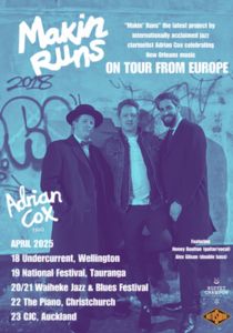 With unrivalled feel and virtuosity for the music he plays jazz clarinetist Adrian Cox is internationally acclaimed, and currently right at the top of his game. Unrivalled feel and virtuosity for the music he plays has led to performances with some of the biggest names in jazz. A leading exponent of the New Orleans’ clarinet with a huge wealth of knowledge of the music and the players of the era, Adrian spends the majority of his life on tour around the world. He’s touring Aotearoa in April, first with ska legends Bad Manners then with his own Adrian Cox Trio, which will perform a show called Makin’ Runs, celebrating New Orleans’ music in its earliest form. Jazz fanciers should absolutely not miss this opportunity.