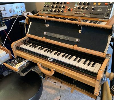 Brown describes the ring device and string visible along the front of the keys of his modern replica Ondomo as being like a cello fretboard, while a lever nestled in a drawer amongst other controls below the left hand, is akin to the bow. He put his name on the waiting list for one in 2021, a few years after discovering the unusual instrument during research for his sound art class.