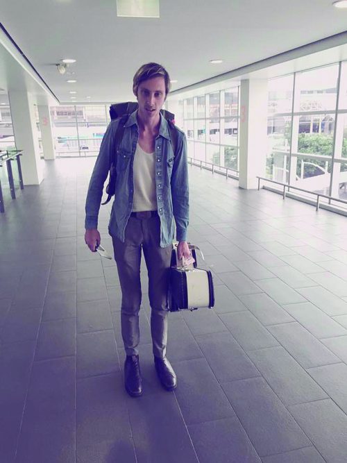 Before leaving NZ he was studying biology at Auckland University and working at the Wine Cellar, where he threw himself a combined 21st birthday/going away party.