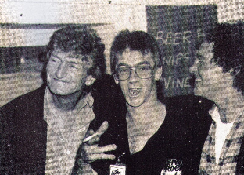 The colour photo i’s with Johnny Cooper, the ‘Maori Cowboy’, whom I’’d known for many years, long before Stranded. The lovely young lady is Melissa Balducci, my PA. The other pic is of the Tommys, Adderley and Ferguson.john dix moments b/w nzm151  Despite my seemingly high spirits, it wasn’’t a good time and I was up early the next day, cancelling flights and advising musos. I caught Kevin Borich heading out the door in Sydney and I managed to contact Dave Russell at Melbourne Airport! It was one of the worst days of my life. A lot of bands had reformed and rehearsed so Hugh and I weren’’t too popular for a while. Still, something was salvaged – Max & the Meteors played the Gluepot, their first NZ performance in 24 years. Ray Columbus & the Invaders did a couple of gigs, Bruno hosted a Blerta reunion at Waimarama and the Flying Nun concert went ahead at the Powerstation. As Hugh says, “We were before our time.””