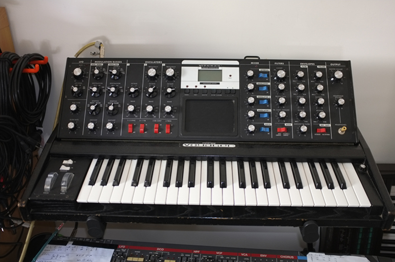 This minimoog used to be Taay Ninh from Electric Wire Hustle’s keyboard. It’s definitely seen its fair share of hot music grace its keys. I met Bob Moog at the RBMA 2003, Cape Town SA. Moog had just released the Minimoog Voyager and he was there to show off his new synth. He was so immensely excited and happy with the synth, as is everybody who owns one. You can hear it on pretty much every song on the ‘L.S.D’ record. I am so happy that such a beautiful instrument has been played and recorded so many times, I hate it when instruments become collectors’ pieces and stop becoming tools.