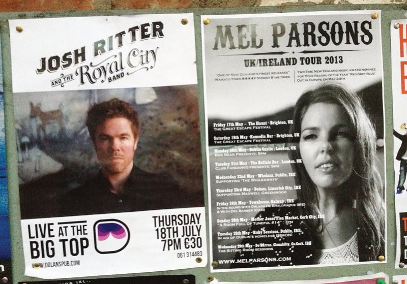 The following day it was off to Limerick, to play support for UK artist Maxwell Greenwood. The show was at Dolans, which like so many of the venues over here – from the street looks like a tiny pub but is actually a cavernous multi-level venue with two big band rooms. Crowd-wise the night was a bit quiet, which was a shame for Max as he is quite brilliant. We had a fun night in any case, met the locals and a few different folks who were “best friends” with The Cranberries.
