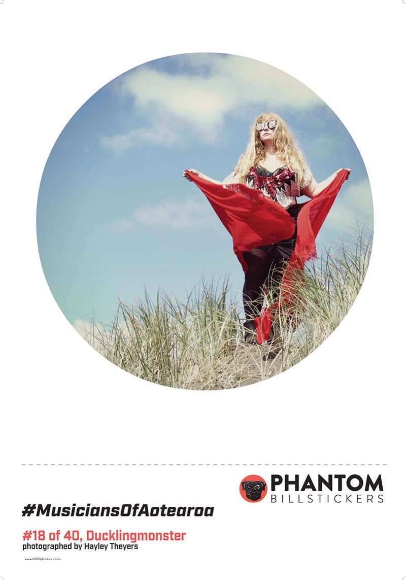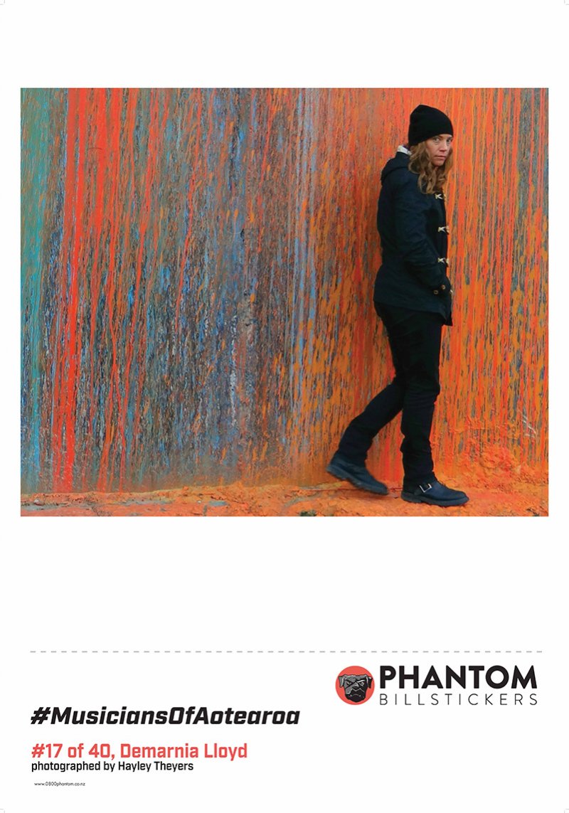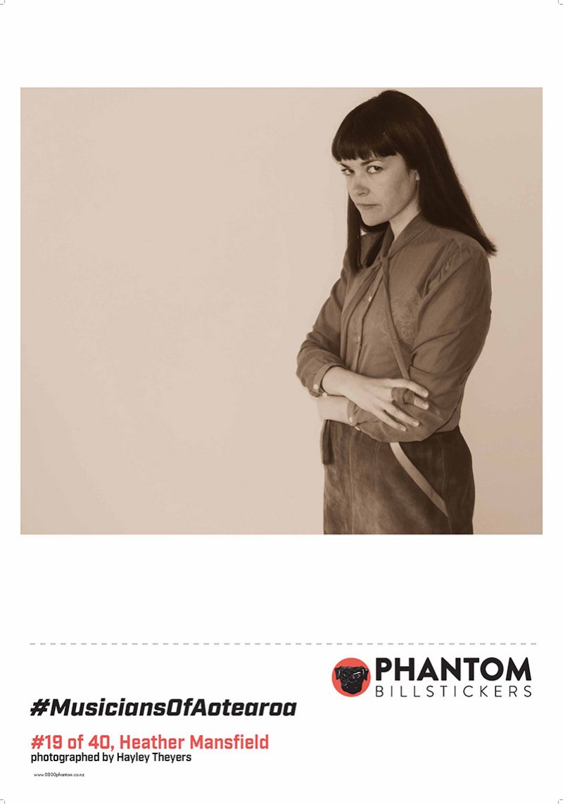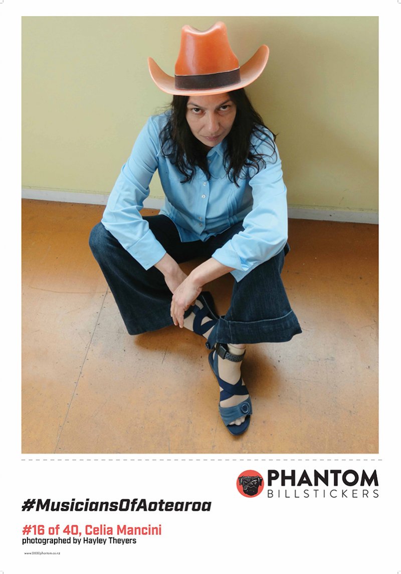A few more days left to spot #MusiciansOfAotearoa 2018 on a street near you. Photographer Hayley Theyers‘ portraits were showcased successfully countrywide by the ever-supportive Phantom Billstickers for the first time last May. The 2018 series shows female musicians only. You’ll find the late Celia Mancini, Tiny Ruins‘ Hollie Fullbrook, Sandra Bell, JessB, Lucy Hunter and many more.