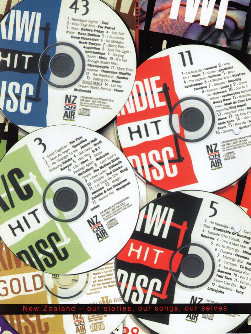 In June, the first Kiwi Hit Disc was supplied to every radio station in the country. It was a concept modelled on the American ‘hit disc’ compilations of new releases that the international major labels bought track space on. Some stations had walls of them. Initially just four Auckland stations, 91FM, 89X, Radio Hauraki and Mai FM were used as ‘barometer’ stations to gauge playlist potential. Awkwardly 89X shut down the week before the schemes launched and 91FM changed format, so the panel was expanded to include stations in Wellington, Christchurch and Dunedin. Deepgrooves enjoyed the most tracks per label.