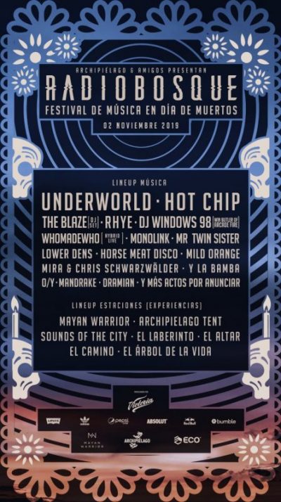 This was the first time the Radiobosque festival had been put on. It was held on Día de los Muertos (Day of the Dead), so the festival was beautifully vibrant and colourful. Elaborate lighting displays from industry-leading visual engineers offered an immersive modern twist on a traditional celebration. For instance, the forest area had decorative graveyards, lit by candles coupled with audio/visual displays hanging above.