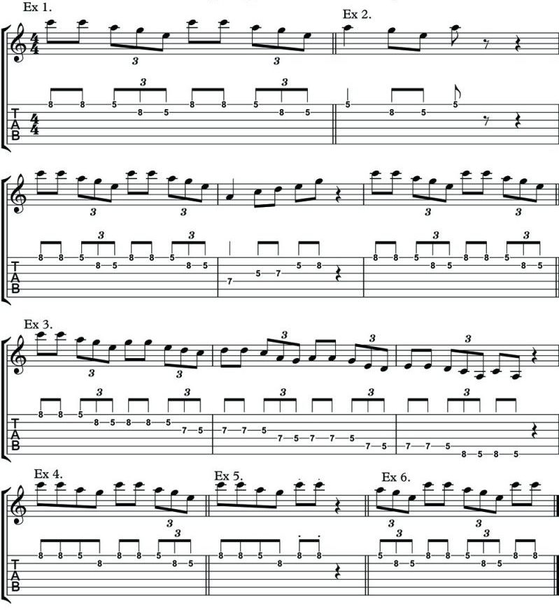 Now let’s put this idea into action by imitating a simple lick taken from a popular recording. You can see in Exercise 1, a simple lick and only one bar long. What you need to do is to get it going well and up to speed, maybe 120 bpm on your metronome.