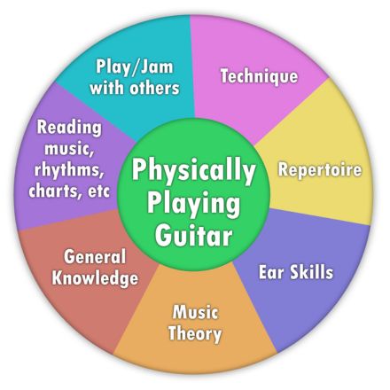 There are more things that could easily have been added and I’m sure you can think of a few right now yourself, but it is easily seen that physically playing guitar at any level is a relatively small part of being a good musician or musicianship in general. Assuming most people reading this article will be learners I will lay out some ideas for practising those six areas here.