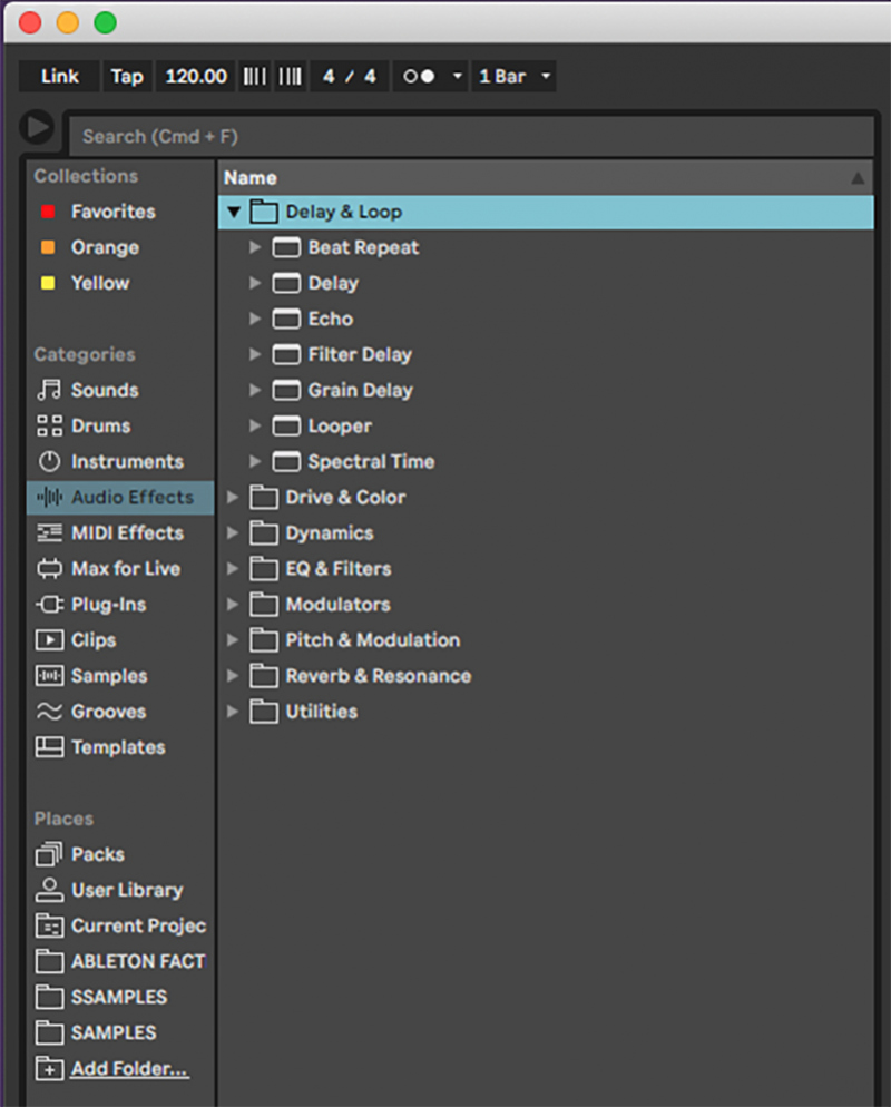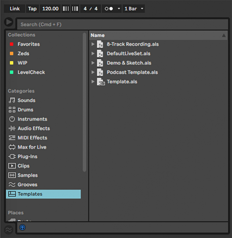 Ableton have finally tidied up their file browser and now everything is categorised. They’ve blended in the very useful Max-based plugins (which most people didn’t even know about) and made it easy to create and use project templates.