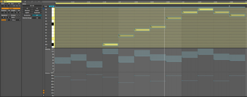 Ableton has also added the ability to add random variations to performances by having ‘note-chance’ editing. So, you could put a sequence of notes into the Piano Roll and then set the probability percentage on each note so that only some of them get triggered each time. At the extreme, it’s moving into generative music as you could draw some notes in a scale (or a drum pattern), then have them be randomly triggered. As well as note-chance, note velocity can also be randomised, to add more variation and expression to performances.