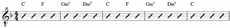 The thing that first caught my attention is the lack of a stable tonic. Sure, it uses notes and chords from F major but it doesn’t really feel like it’s in the key of F major, or any of its related keys such as D minor or G Dorian. The reason for this is that, although the F chord makes several appearances, it never lands where one would expect a tonic chord to land. Beginning a chord progression on the tonic chord sounds grounded, assured, like we’re starting from home. Ending a progression on the tonic chord feels complete, resolute, like we have concluded our journey and are back at our resting place. Sabotage does neither of these.
