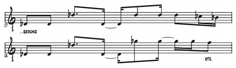 Even more harmonic prosody is evident during the outro (as shown in Figure 3), as the pop-drop is accompanied by a descending bass figure supporting an I | I7/bVII | IV/VI | bVII | V | I chord progression, a daring move introducing more harmonic material on the outro, it reminds me of Radiohead’s terminally climatic form (Osborne, 2017), where a new and perpetual section of music is introduced at the end.