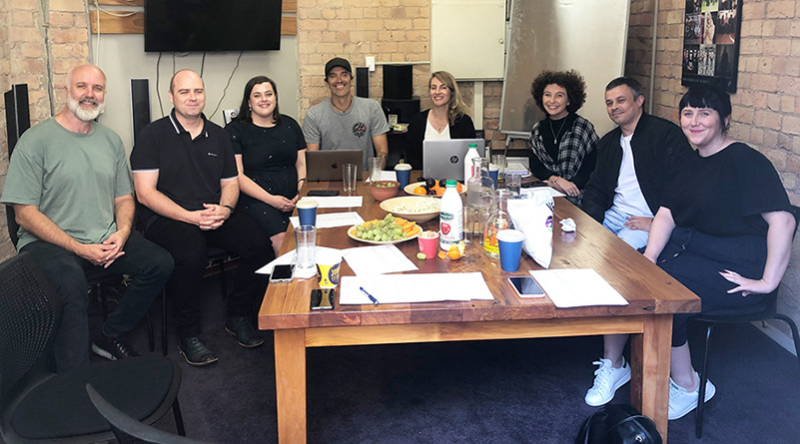 The February 2020 panel was made up of (from left to right) Joost Langeveld (Big Pop Studios), Hayden Booth (Global Eagle), Amy Tempero (More FM), Jeff Newton (NZ On Air), Henessey Griffiths (Radio1), Hayden Hare (Flava) and publicist Anna Loveys.