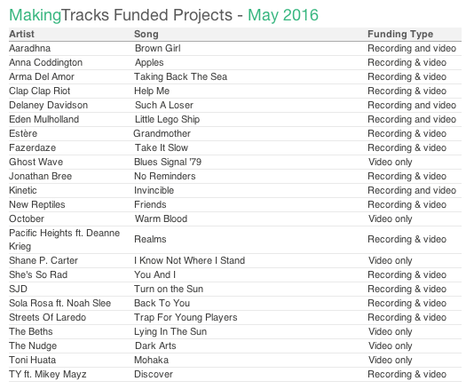 NZ On Air Music have released the results of they Making Tracks May 2016 funding round.