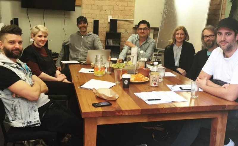 Godfrey de Grut, Jeff Newton of NZ On Air, journalist Lydia Jenkin, Mikhal Norriss of iHeart Radio, Rockquest/Parachute Music’s Matt Ealand and Ross Flahive of ZM.